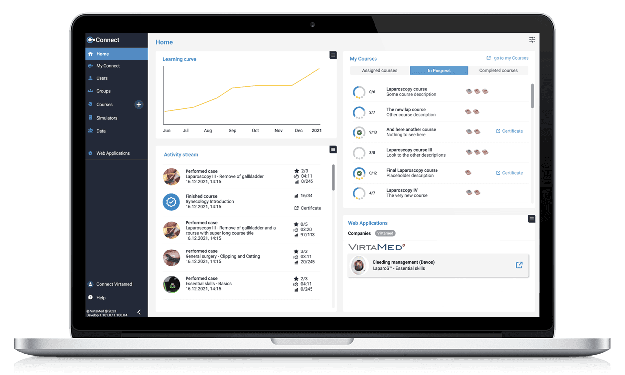 Connect is VirtaMed's cloud-based data management system that lets you see and manage all of your simulator data in one place. With Connect there is no need to manually produce reports - all course and student performance data is easily accessible, with an easy-to-use widget providing a visual overview of performance. Use Connect to remotely create and update courses, track student progress, and manage your simulator usage, all from the convenience of your desk or tablet.