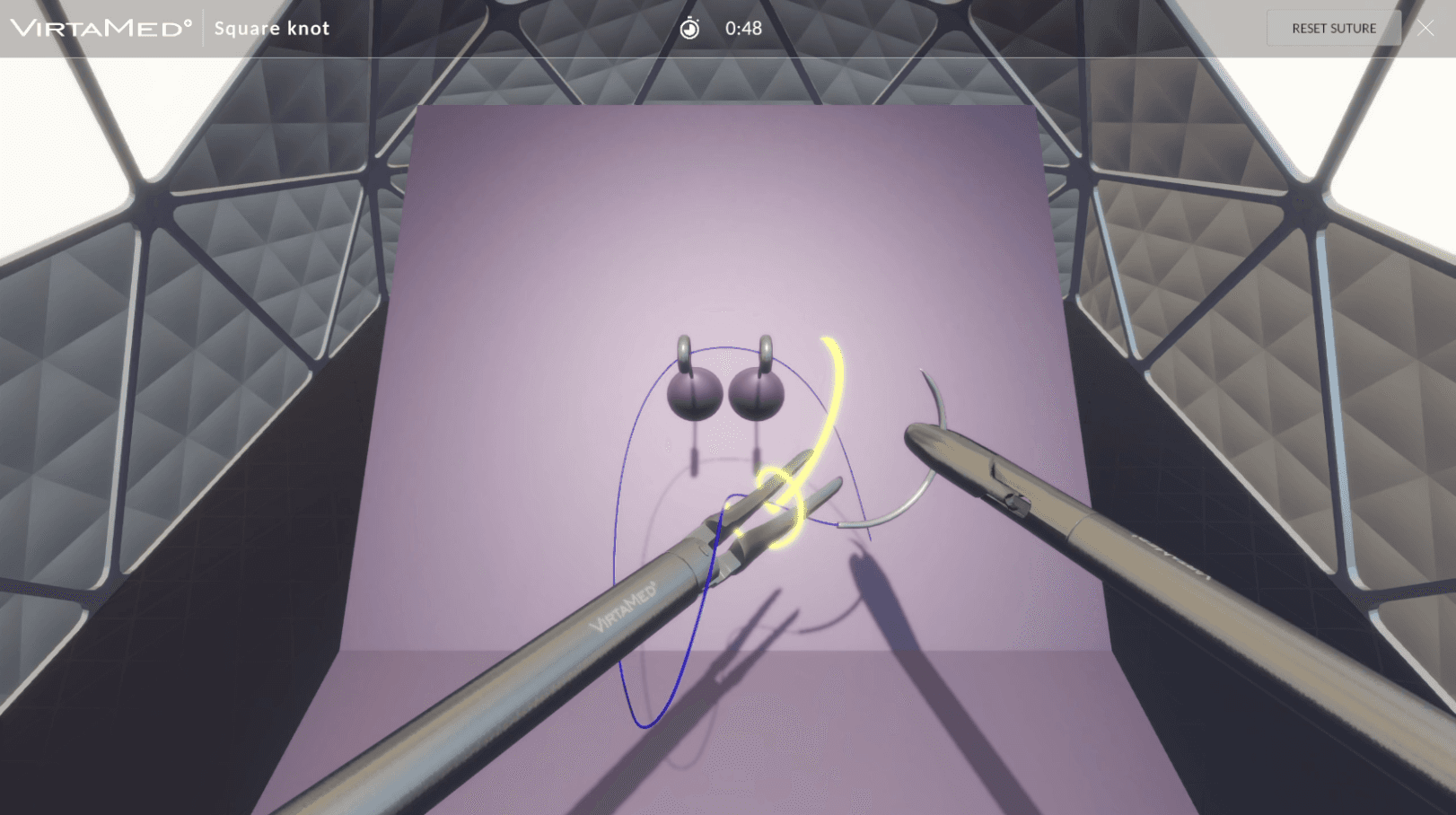 Notre métrique unique d'acceptation des nœuds permet l'exploration de différentes techniques de suture - suremballage et sous-emballage, 1 main contre 2 mains, aiguille tombante contre aiguille retenue - ainsi que des cas non guidés pour une pratique libre, tout en garantissant l'exactitude du nœud résultant.